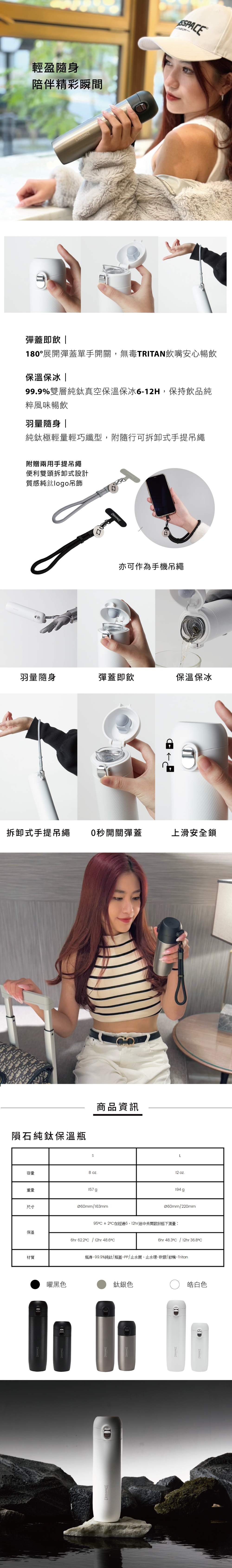 隕石純鈦保溫瓶S-235mL三色(曜黑、皓白、鈦銀)